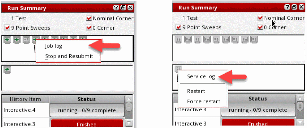 If the simulation completes before you reopen the cellview, you can view the results saved in the history.