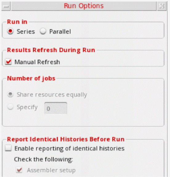 - To enable the parallel run, before saving an OCEAN XL script from an maestro view, select the Parallel option in the Run Options form.