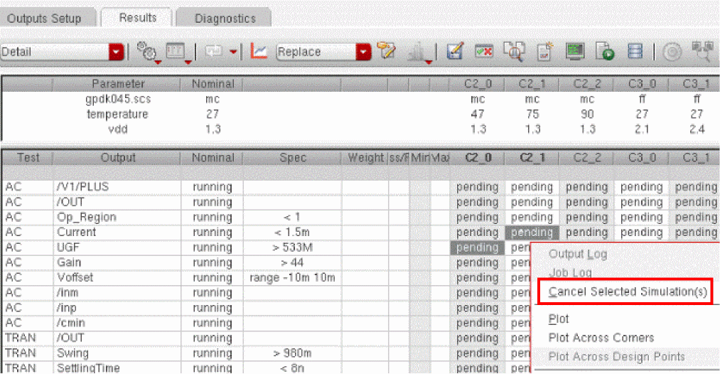- Canceling Simulations for Selected Tests or Corners