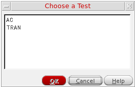 Choose Launch – ADE Explorer. If there are multiple tests in ADE Assembler and you choose Launch – ADE Explorer to open a test, Virtuoso displays the Choose a Test form that shows a list of tests available in the view.