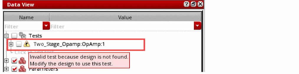 Editing a test in ADE Explorer is helpful in the cases when you want to modify the setup and run simulations for a single test. In this application, you can perform various tasks, such as choosing a design, updating design variables, setting up analyses and output variables, running simulations, and performing real-time tuning.