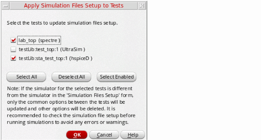 New corners created for a test being edited in ADE Explorer will be enabled only for that test when the setup is copied back to ADE Assembler. These corners will not be enabled for other tests in ADE Assembler.