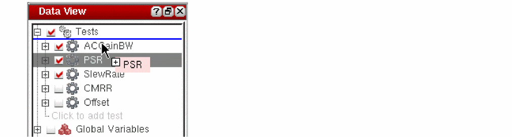 When there are multiple tests defined in the ADE Assembler setup, you can change the order in which the tests are listed in the Data View assistant. The order of tests in this assistant also defines the order in which simulations are run.
