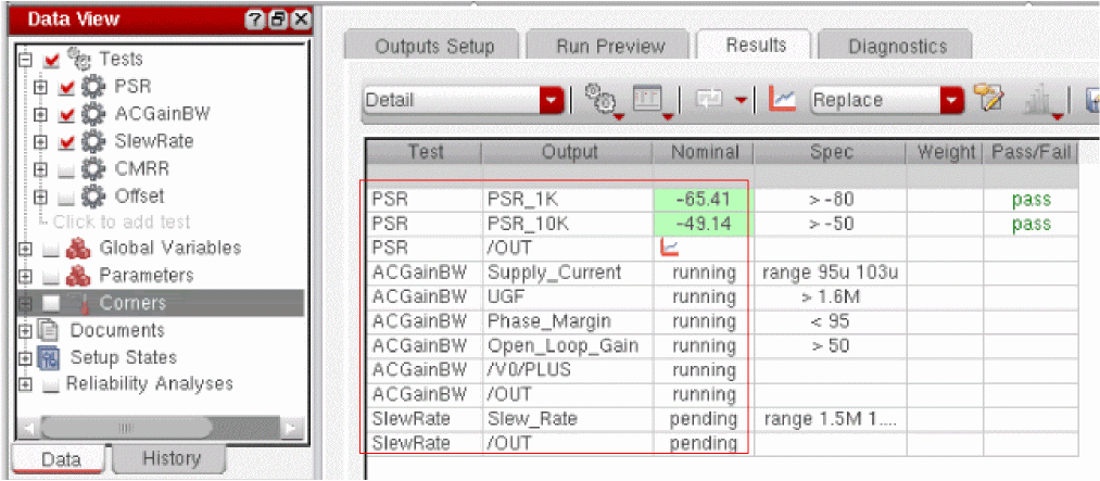 After the test is visible in the ADE Explorer window, you can edit it, run simulations and view output results and plots, or perform real time tuning as required. For details on the ADE Explorer environment, refer to the