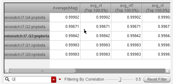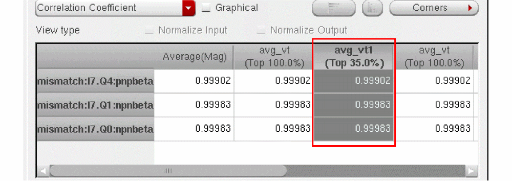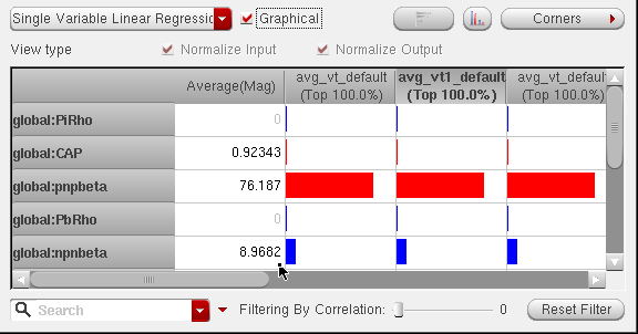 Sometimes the variable whose sensitivity is being determined is at its boundary of possible values (as specified by the variable range and the nominal value). In this case, ADE Assembler cannot determine a higher value (if the current value is at the upper boundary) or lower value (if at lower boundary) for computing its sensitivity. In this case, the tool uses only two points for calculating the sensitivity and the correlation will always be 1 or -1, since two points will always form a straight line. However, the regression values (for this variable) are still applicable (since they represent the slope of the line).
