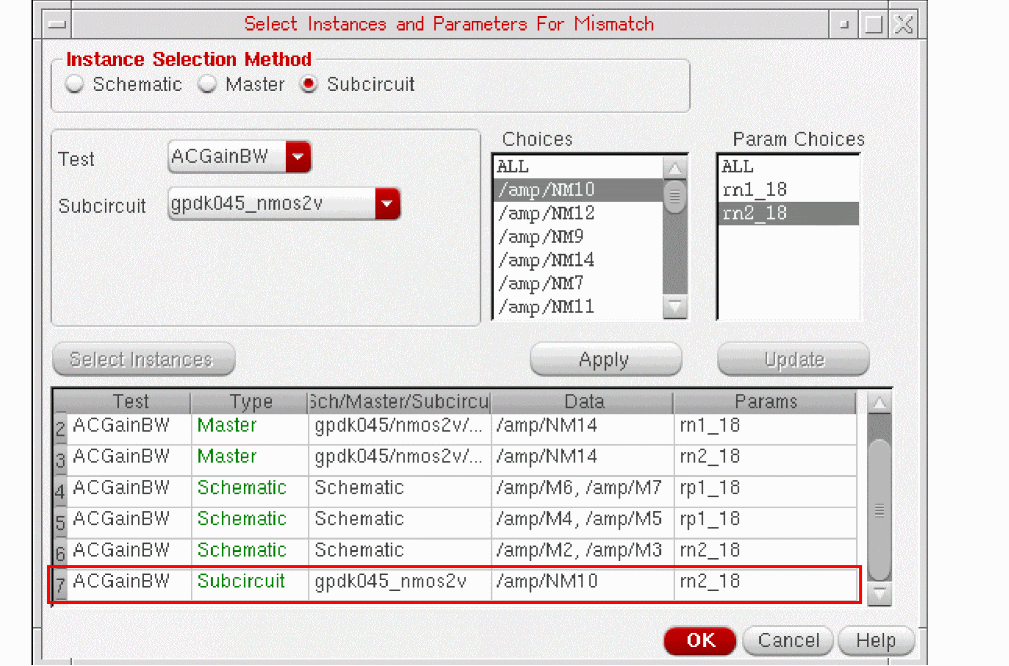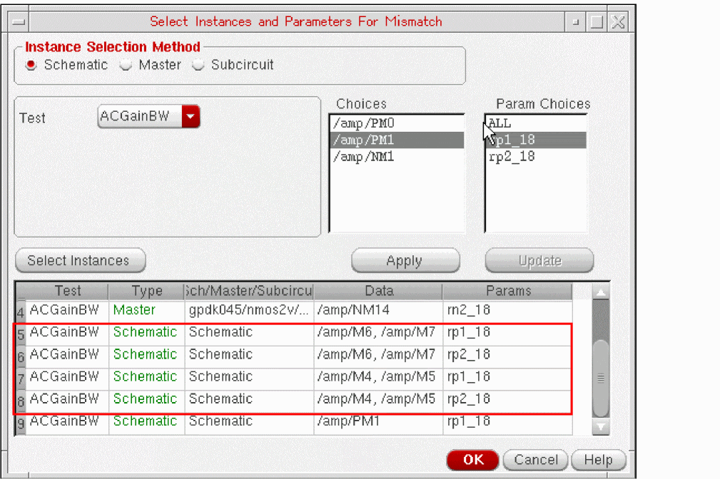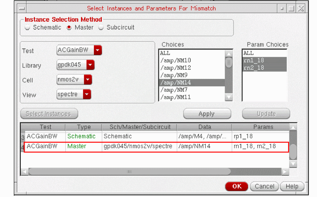 - Selecting Instances and Parameters for Mismatch Variation