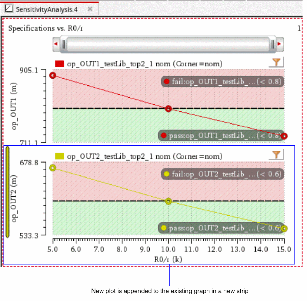 - If the new plot is for the same parameter but for a different specification as that of the graph plotted earlier, the new plot is displayed in a new strip instead of being appended to the existing graph because of common x-axis parameter, as shown below.
