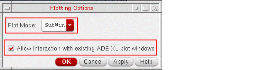 In this plot mode, for every new plot, a window is added to the existing Virtuoso Visualization and Analysis XL window, as shown below.