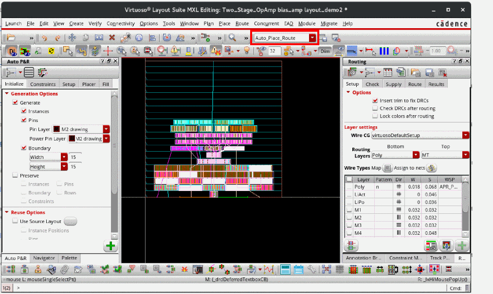 The following image shows the Auto_Place_Route workspace in Layout MXL:
