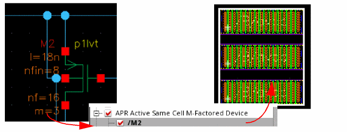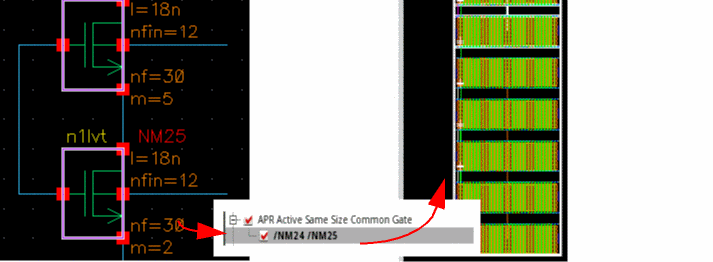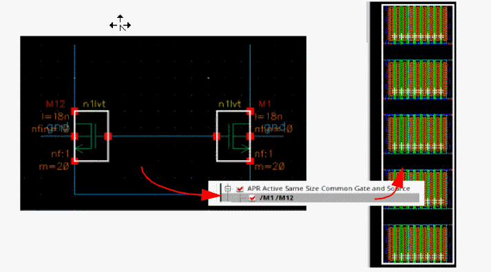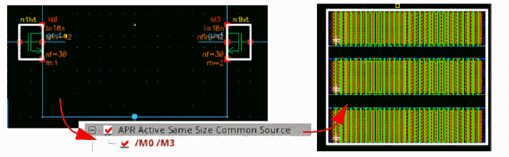 Also, the devices must have the same size (length and width), number of fins, number of fingers, and mfactor.