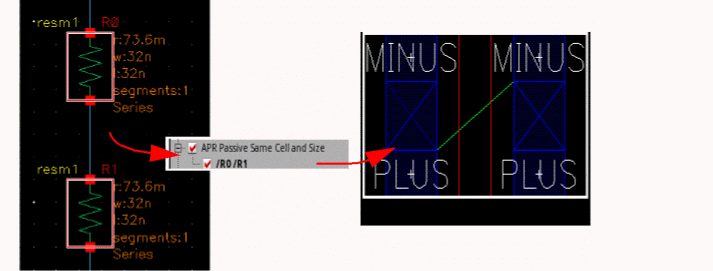 If more than one passive devices are found in a single group, the tool checks for devices with the same cell name, size, and value.