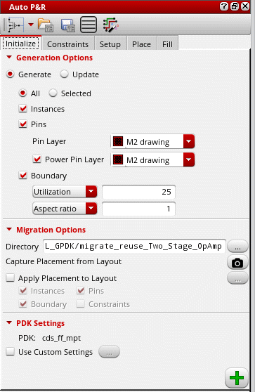 - Open the Initialize tab of the Auto P&R assistant.