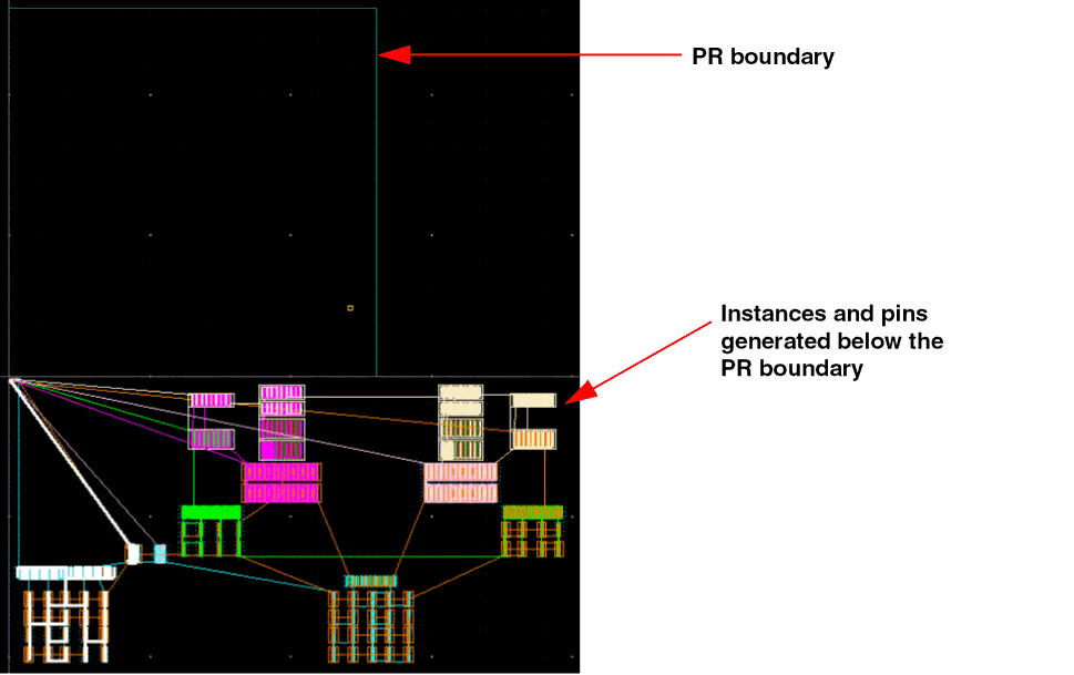 Click Apply to generate the selected objects in the layout canvas. All the instances and pins are generated below the PR boundary.