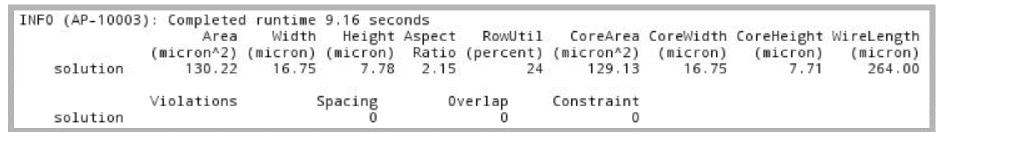 After running the Virtuoso device-level automatic placer, a placement report is displayed in the CIW.