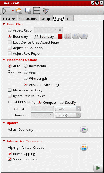 Open the Place tab of the Auto P&R assistant.