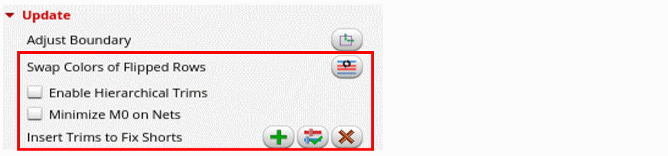 - In Insert Trims to Fix Shorts, you can add trims to devices in the current cellview or PR boundary, validate trims, and delete trims