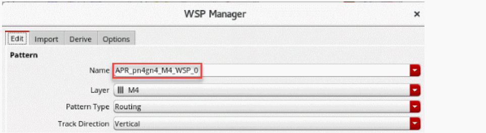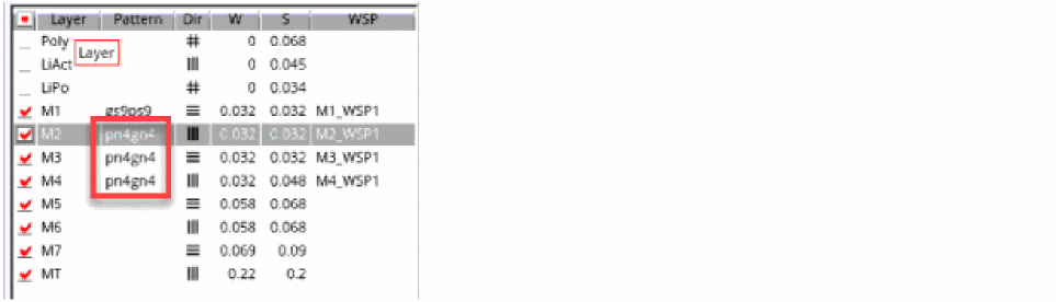 Specify a pattern in the Pattern column of the layer table. This is to allocate tracks for supply wire types to generate the supply grid on selected layers.