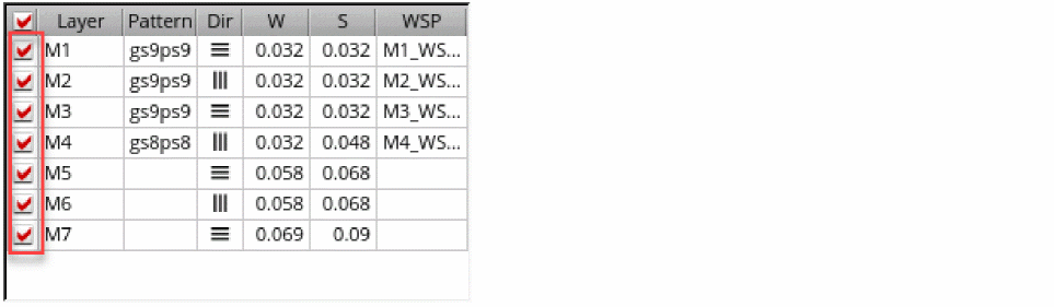 In certain nodes, local grids are generated for the lowest metal layer when the design is a non-uniform design. This makes the WSP column against the lowest metal layer for which the local grids are created go blank. These local grids can be seen in the track pattern assistant by selecting the Show All option.