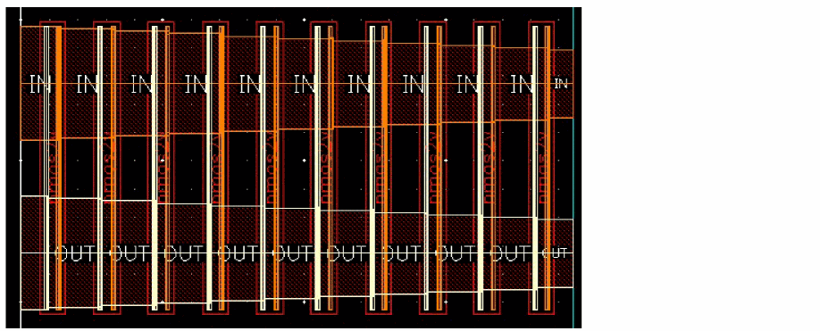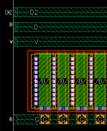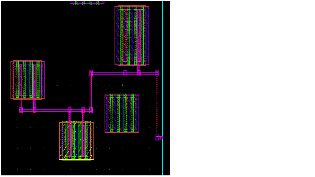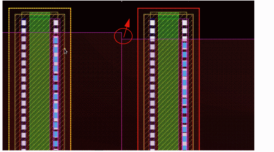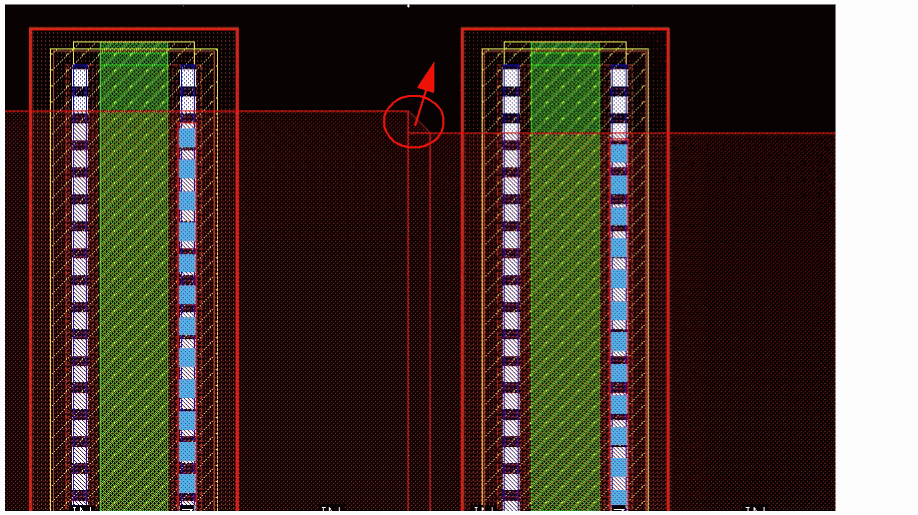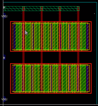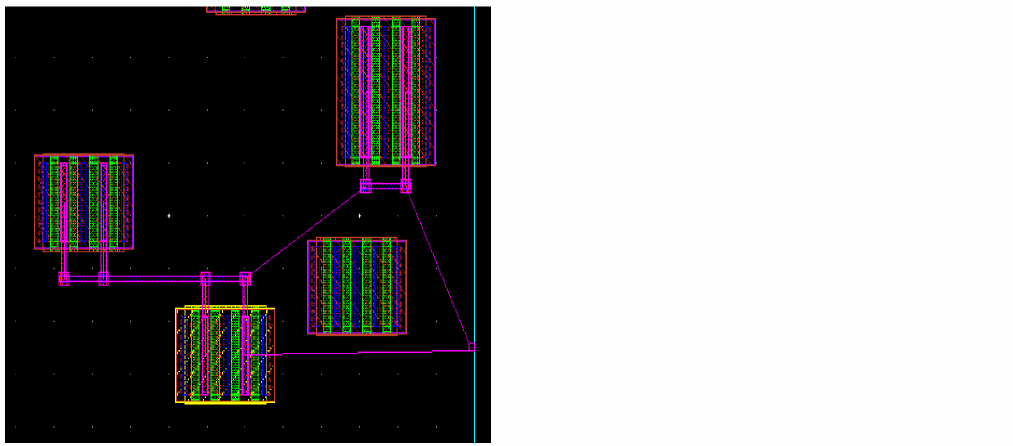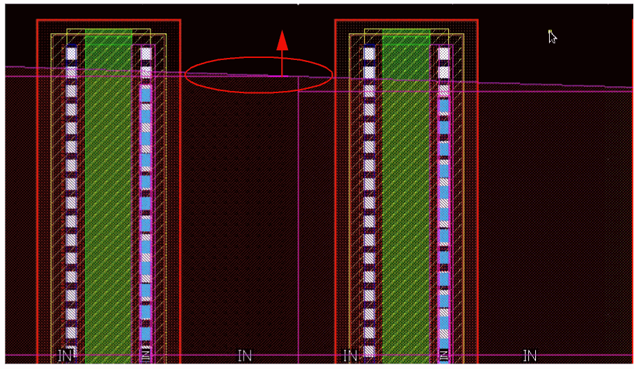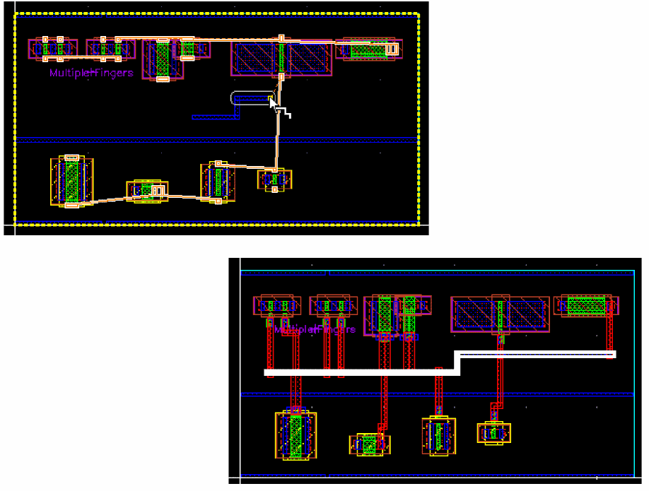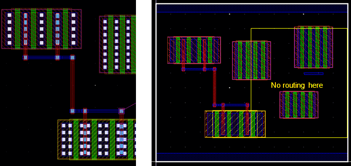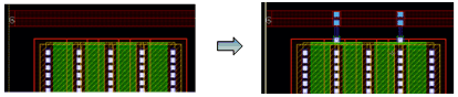 Example 3: The following figure shows an example where the layer for gate and non-gate twigs is selected as Metal1 and the width of the gate and non-gate twigs is set equal to the width of the pin.