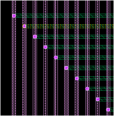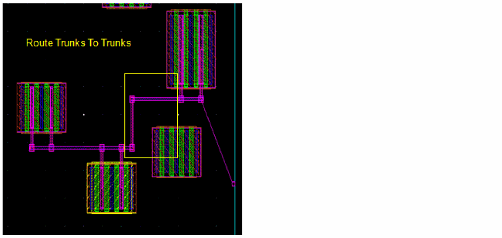 However, when the Trunk to Trunk Routing step is deselected, the trunks are preserved and no vias are added, as shown in the following figure: