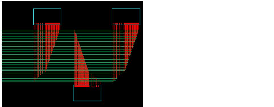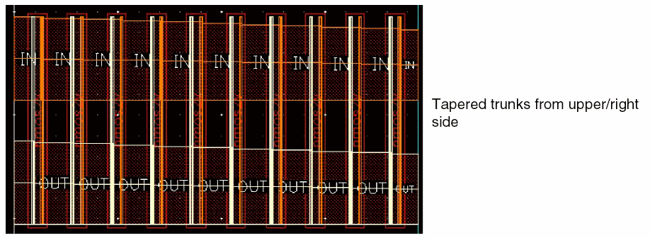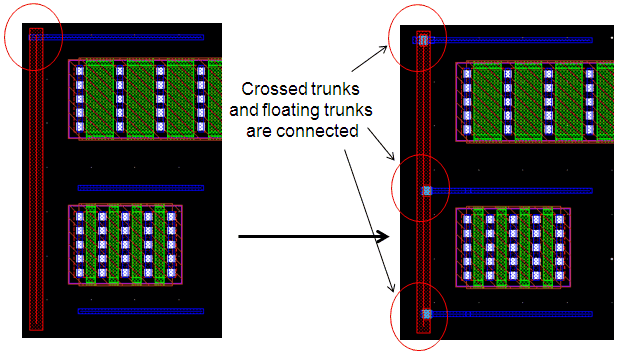 When selected, vias are added at the intersections of the trunks. This can also be used together with trimming, as shown in the following figure: