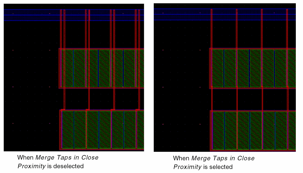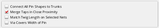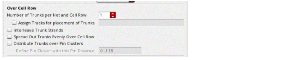 Also, when Pin to Trunk routing starts, the router, by default, completes the routing with a tap partially covering the trunk if complete coverage of the width of the trunk is not possible; ensuring that the number of vias used is not less than the value of the minNumCut constraint.