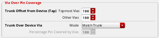 Controls the percentage of a trunk or a pin to be covered with vias. This option is enabled only when the Match Pin or Match Pin Except Top option is selected from the Mode drop-down list.