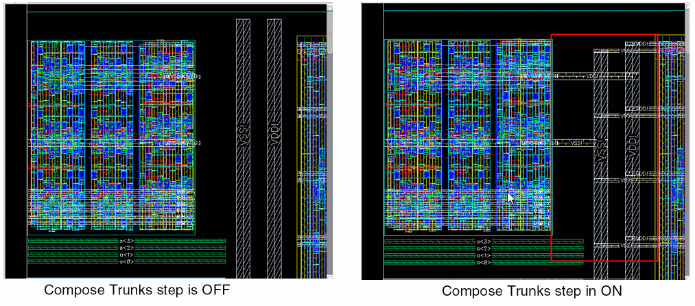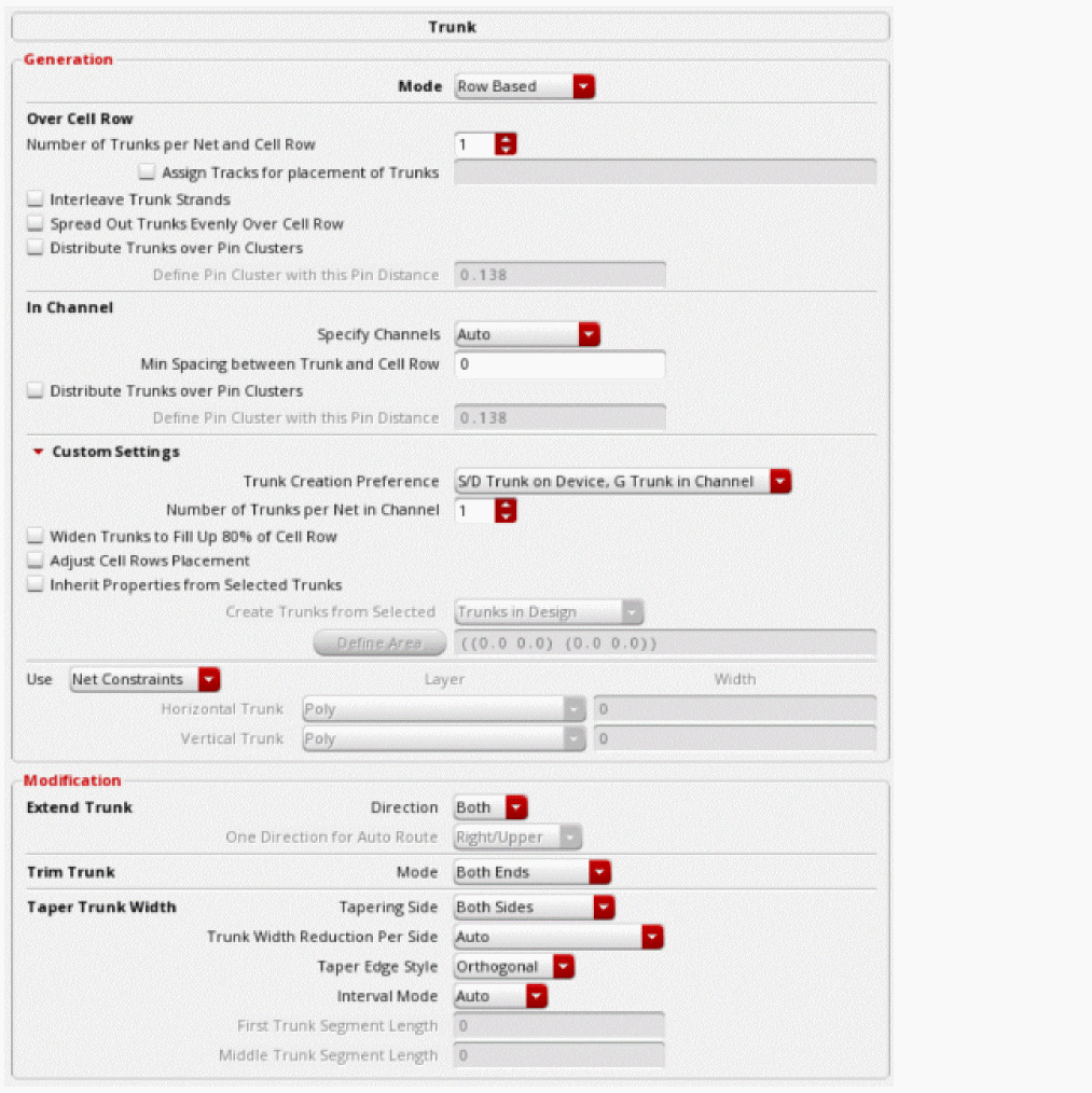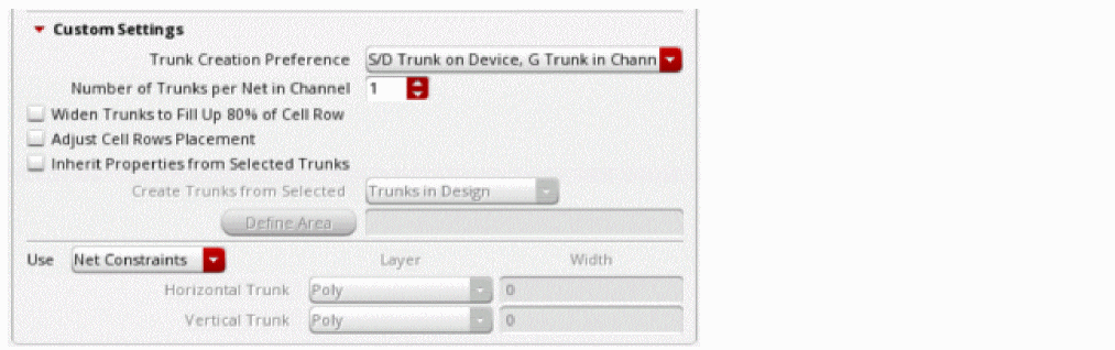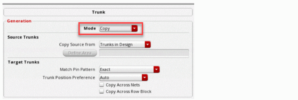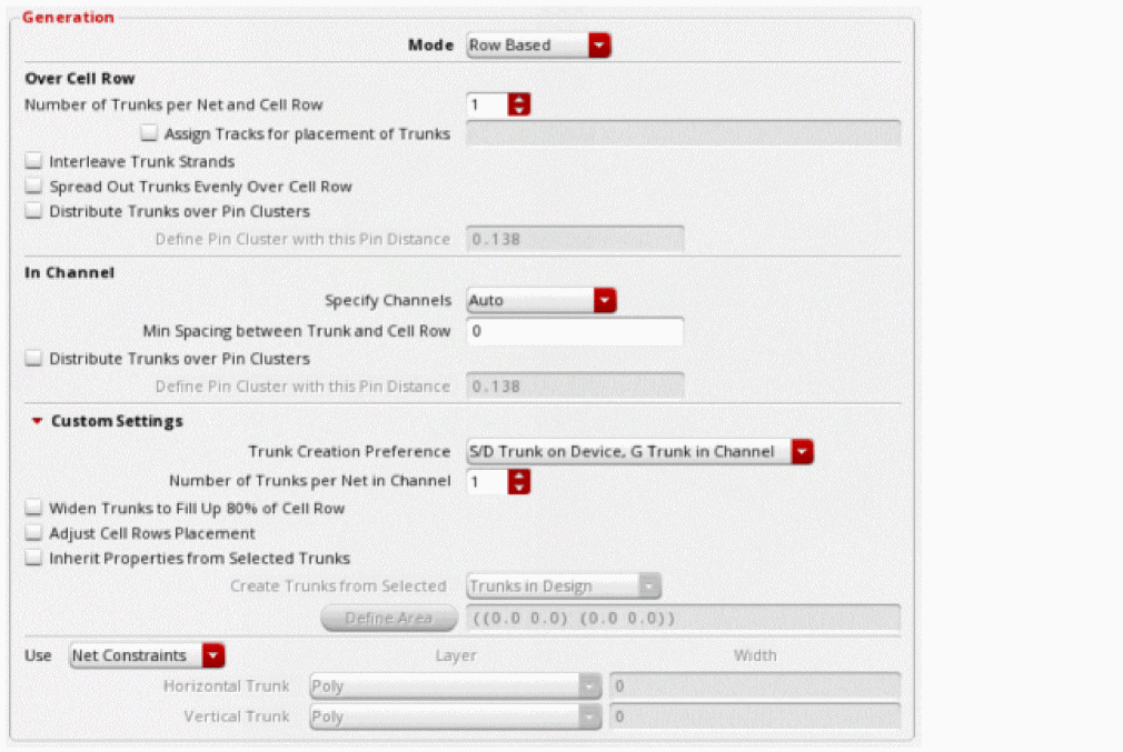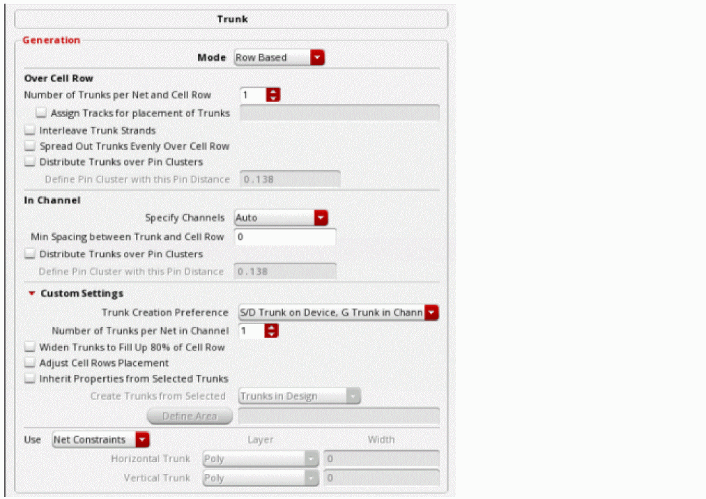 Select the Generate trunk routing step if you want to generate trunks for the selected or all nets in the design. For more information, see Specifying Trunk Generation Options (ICADVM18.1 EXL Only).