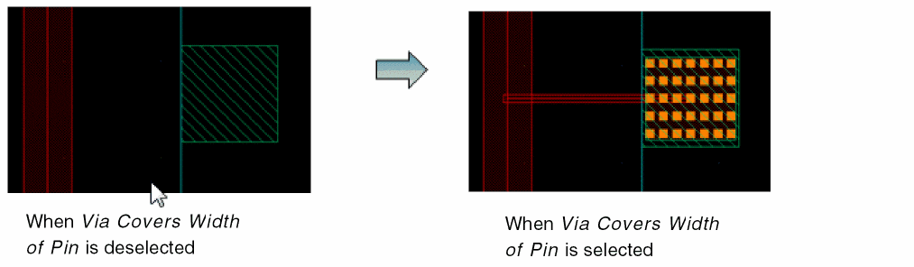 This option is applied to a set of pins only if they satisfy the following conditions:- The pins are on the same layer.