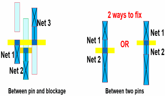 Advanced node processes (SADP) with trim shapes might not have DRC clean instance pins (minArea) and post placement violations between other instance pins (minEndOfLineSpacing). This causes problems for automatic routing to access pins because of the violations generated during routing (pin are required to be DRC clean before routing).
