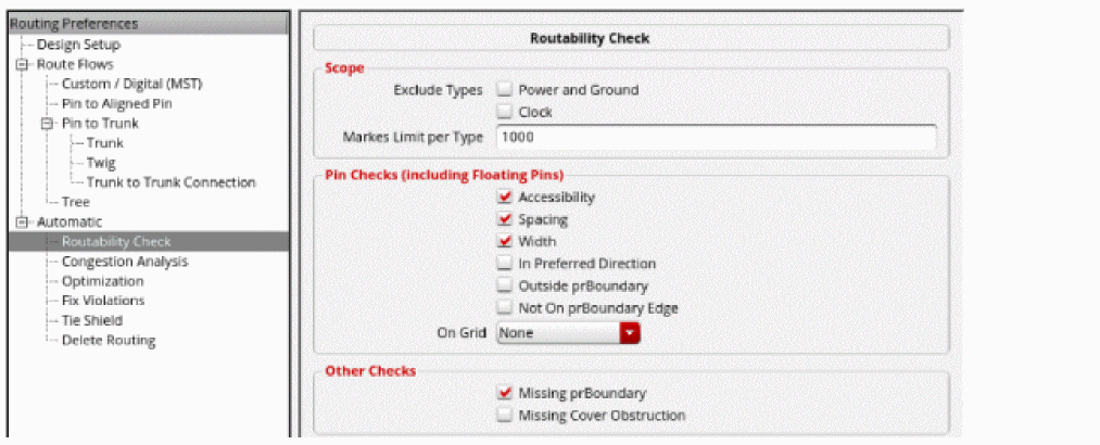 When selected, the pins on the nets to be routed are checked for planar and via accessibility. If a pin is inaccessible, the router does not attempt to route to it, and a marker appears on the Routing tab of the Annotation Browser. This option is selected by default. -