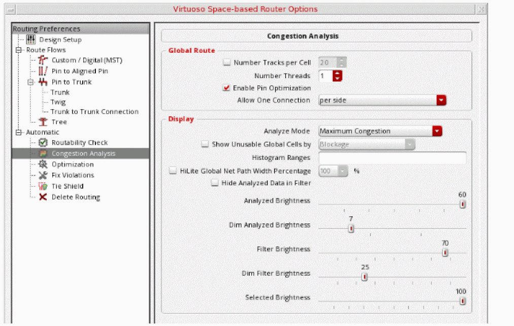 Using the Virtuoso Space-based Router Options form, you can specify the following top-level routing features: