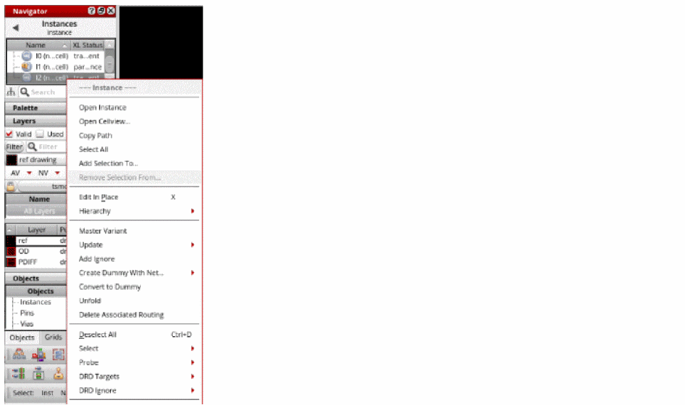 - Select an instance in the Navigator assistant or layout canvas.