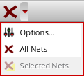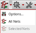 If you want to perform the routing feature only on selected nets, select one or more nets from the Navigator Assistant. The Selected Nets menu item is now enabled in the drop-down menu. When you click the Selected Nets menu item, the corresponding routing feature is performed on selected nets. In addition, the toolbar icon of the corresponding routing feature automatically changes to the Selected Nets icon and the tooltip on the icon informs you that the last action of the routing feature was on the selected nets.