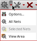 Click the Optimization icon to optimize the routing results in the layout design. By default, optimization is done on all nets in the layout design. Click the arrow next to the Optimization icon to view the options available on the drop-down menu associated with the icon.