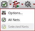 The commands on the Route menu and the Virtuoso Space-based Router toolbar are synchronized at any given time. This means that if there are no nets selected in the Navigator Assistant, then the Selected Nets option in both the Virtuoso Space-based Router toolbar and the Route menu is disabled. This option is enabled only if there is at least one net selected in the Navigator Assistant.