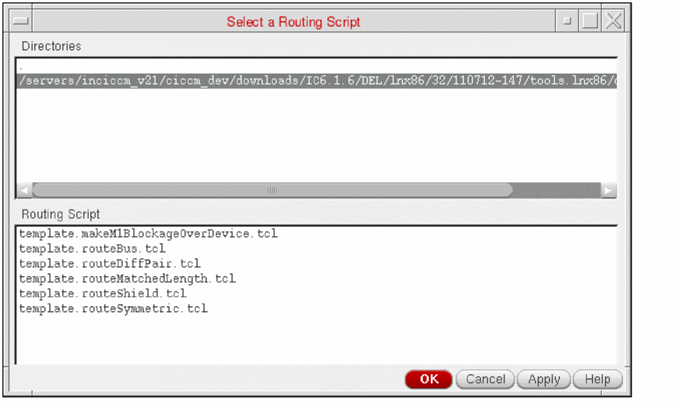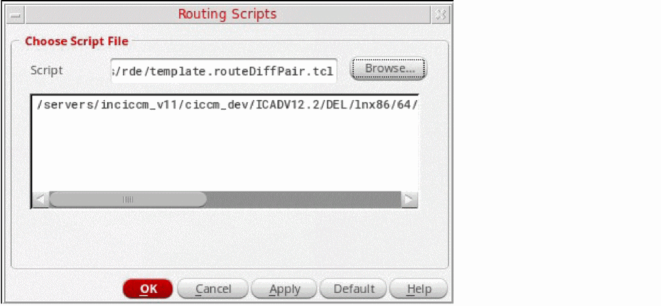 .tclscript from the Routing Script box. - Click OK. The selected script is displayed in the Script field and in the box below the field.