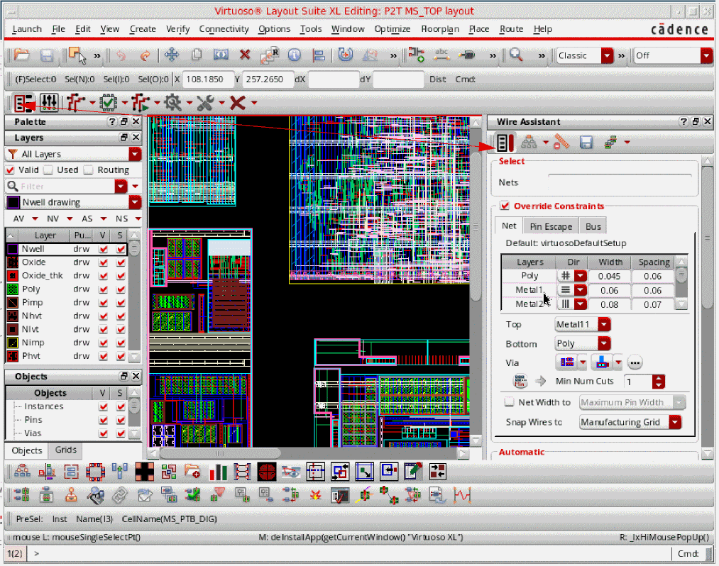 The Virtuoso Space-based Router commands are available in Virtuoso Layout Suite XL and higher tiers. You can access these commands by using either of the following methods: