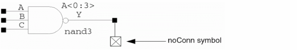Use this symbol on wires without end points that do not physically connect to schematic or component pins, labels, or other wire segments. Attaching this symbol bypasses the unconnected wire check.
