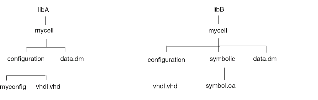and you try to copy libA/mycell and libB/mycell to the same location, nothing will be copied because libA/mycell/configuration/vhdl.vhd conflicts with libB/mycell/configuration/vhdl.vhd and libA/mycell/data.dm conflicts with libB/mycell/data.dm. In such a case, you can copy the data only if you rename the objects with conflicting names.