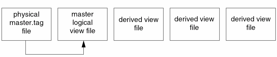The master.tag file, if present, defines which view file inside each cell directory is the master. It records which physical file is the master logical view file for any given view. A given view always has one master representation and zero or more derived representations. When derived representations exist for a view, some applications might need additional information in the library to indicate which data is master and which data is derived.