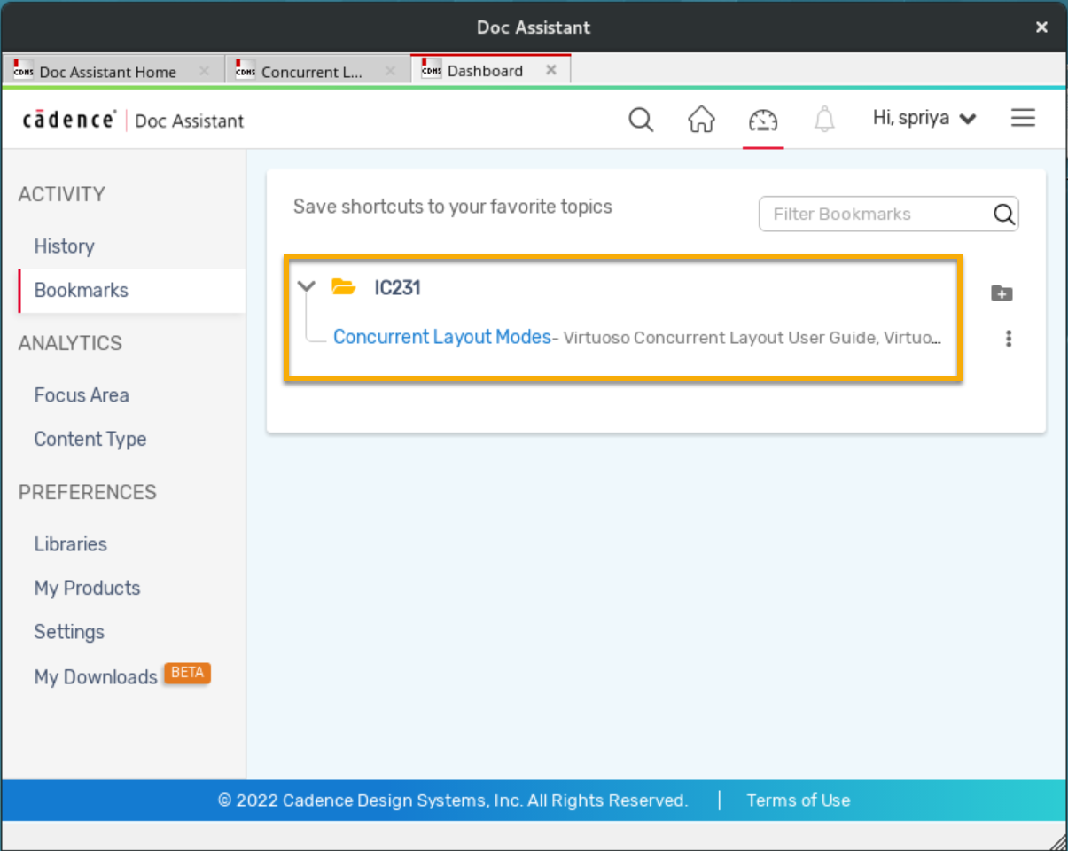 To import Cadence Help bookmarks into Doc Assistant, refer to Importing Cadence Help History and Bookmarks.