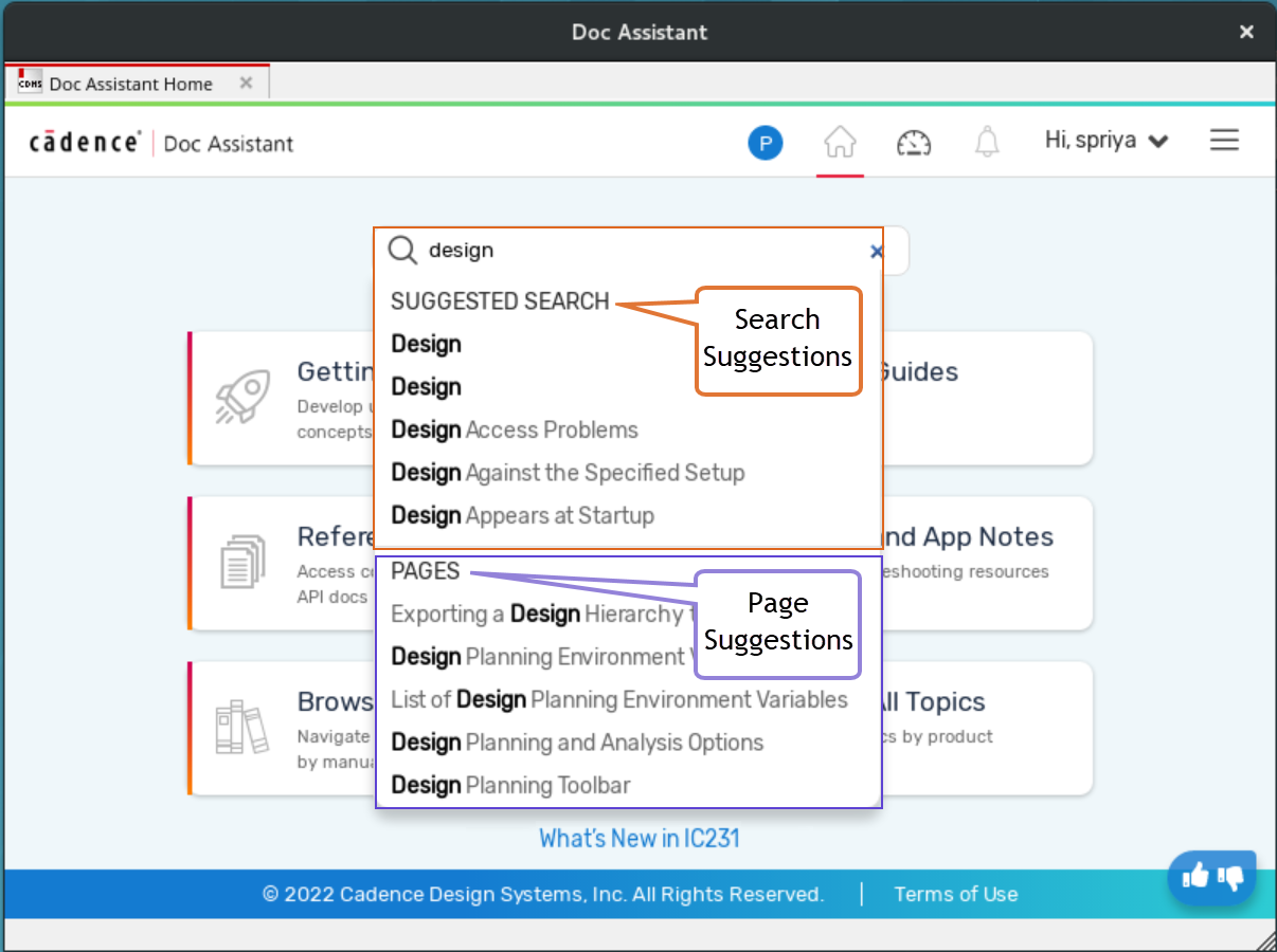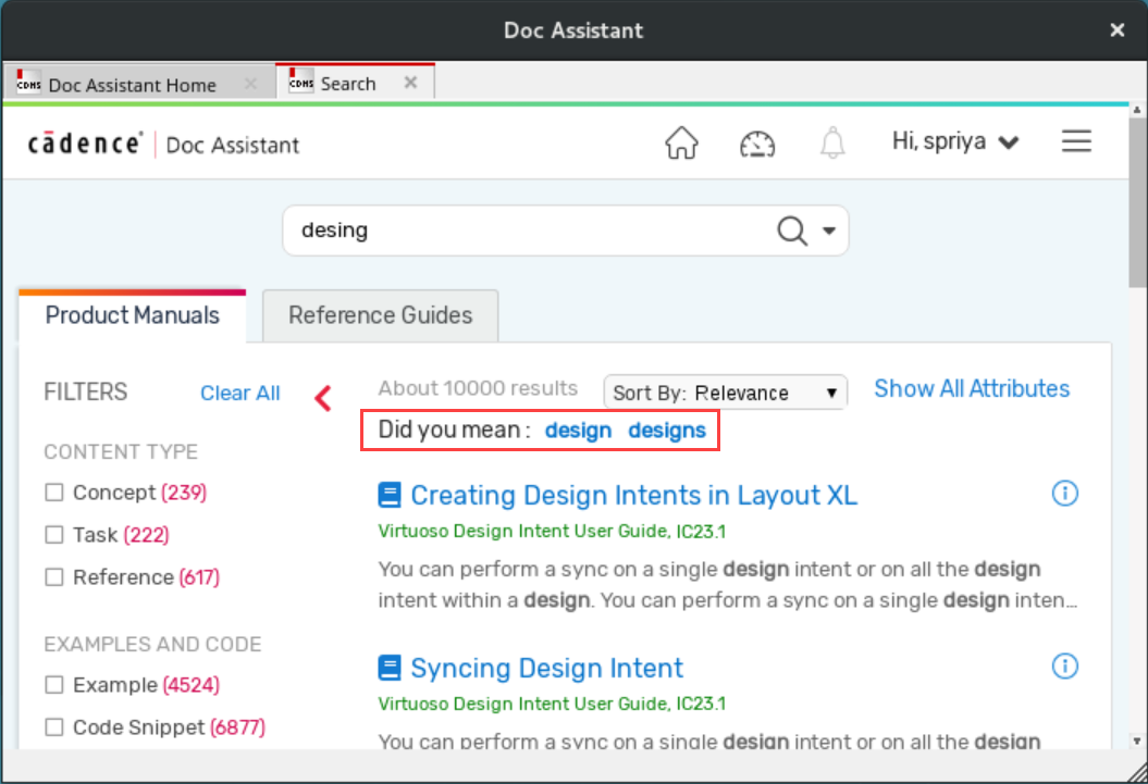 Doc Assistant also provides alternative suggestions for a misspelled search term.