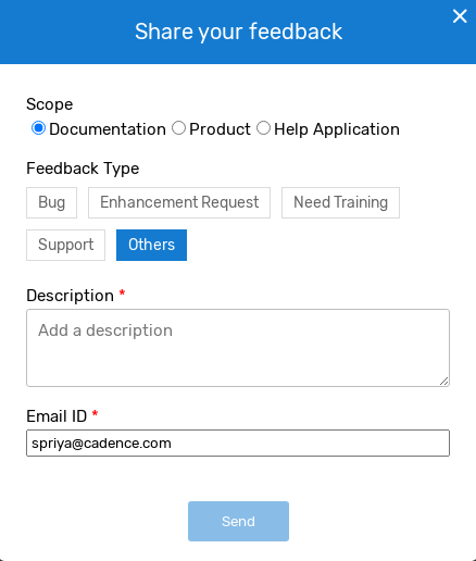 - Select a Scope, which is the area in which you found an issue — the Documentation, the overall Product, or the Help Application (Doc Assistant).