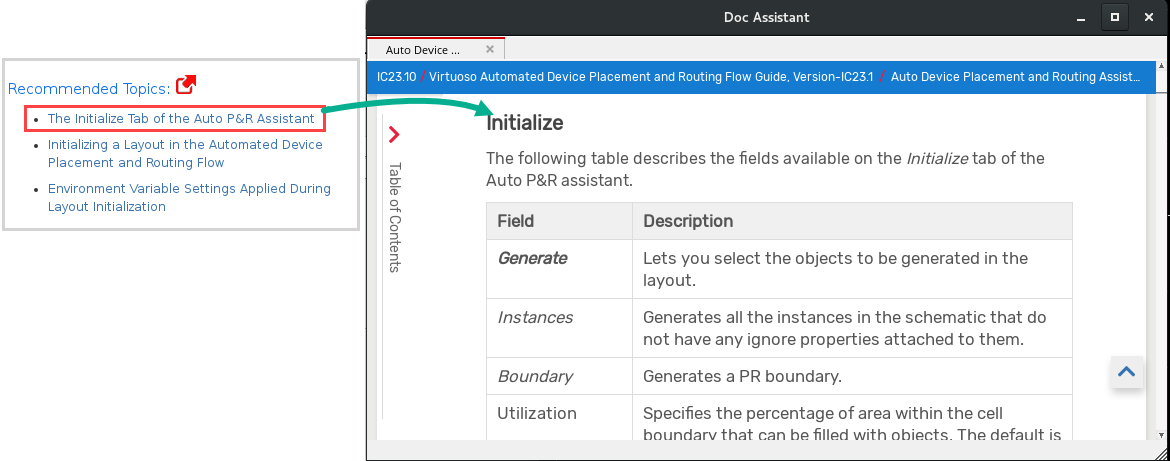 For certain tools, the standard help access points, such as a Help button or [?] icon or the Help menu in a UI might open the Task Assistant interface instead of Doc Assistant. Task Assistant is a light-weight help tool to provide a quick overview of the tasks in the context of an action you are currently performing.