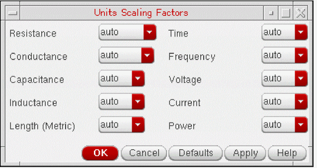 To display the Units Scaling Factors form and edit the scale factors, use the SKILL function cdfEditScaleFactors.