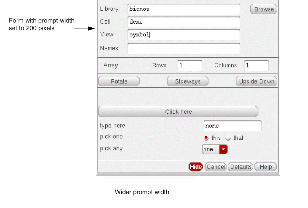 The following form shows the prompt width of 200 pixels.