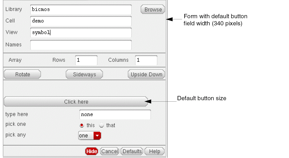 The following fields let you control the size of parameters on an instantiation form (such as the Add Instance or Edit Object Properties forms). These fields do not affect the display in the Edit CDF form.