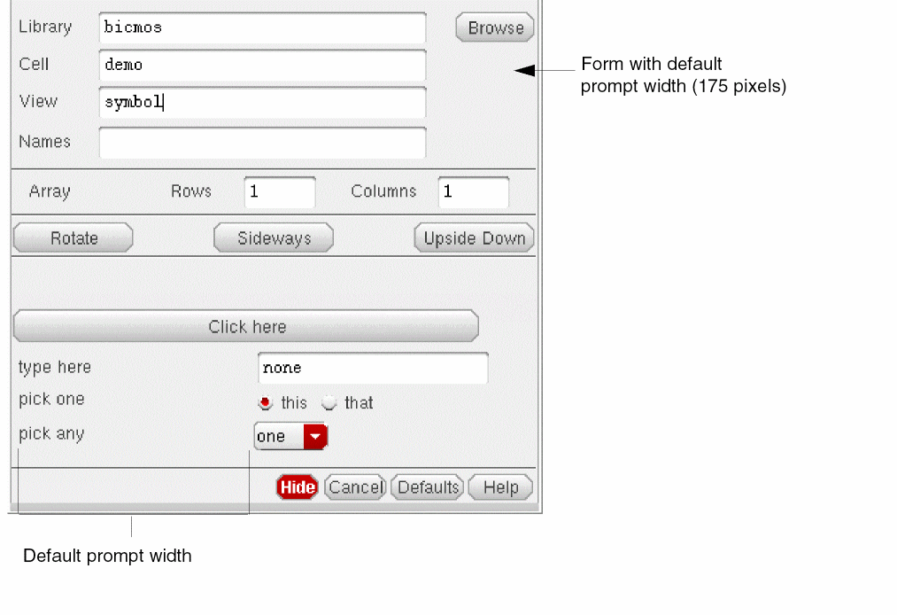 Prompt width lets you specify the width of the prompt on the instantiation form. The default width is 175 pixels.