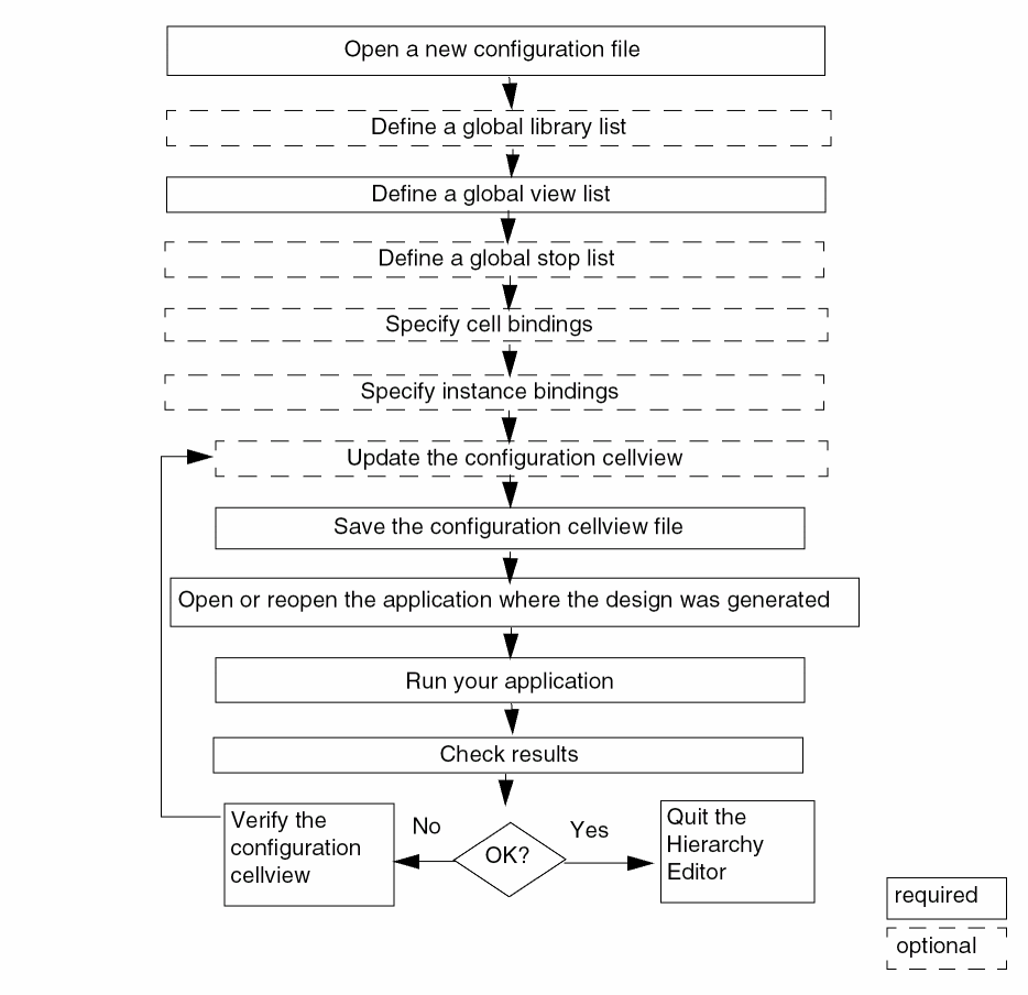 The global library list is a list of libraries that determines the libraries from which each cell is obtained. The global view list is a list of views that determines which view is selected for each object in the design. The global stop list specifies a list of views that are to be treated as leaf nodes, that is, they are not to be expanded. The global constraint list is a list of constraint views that determines the constraints that apply to the design.
